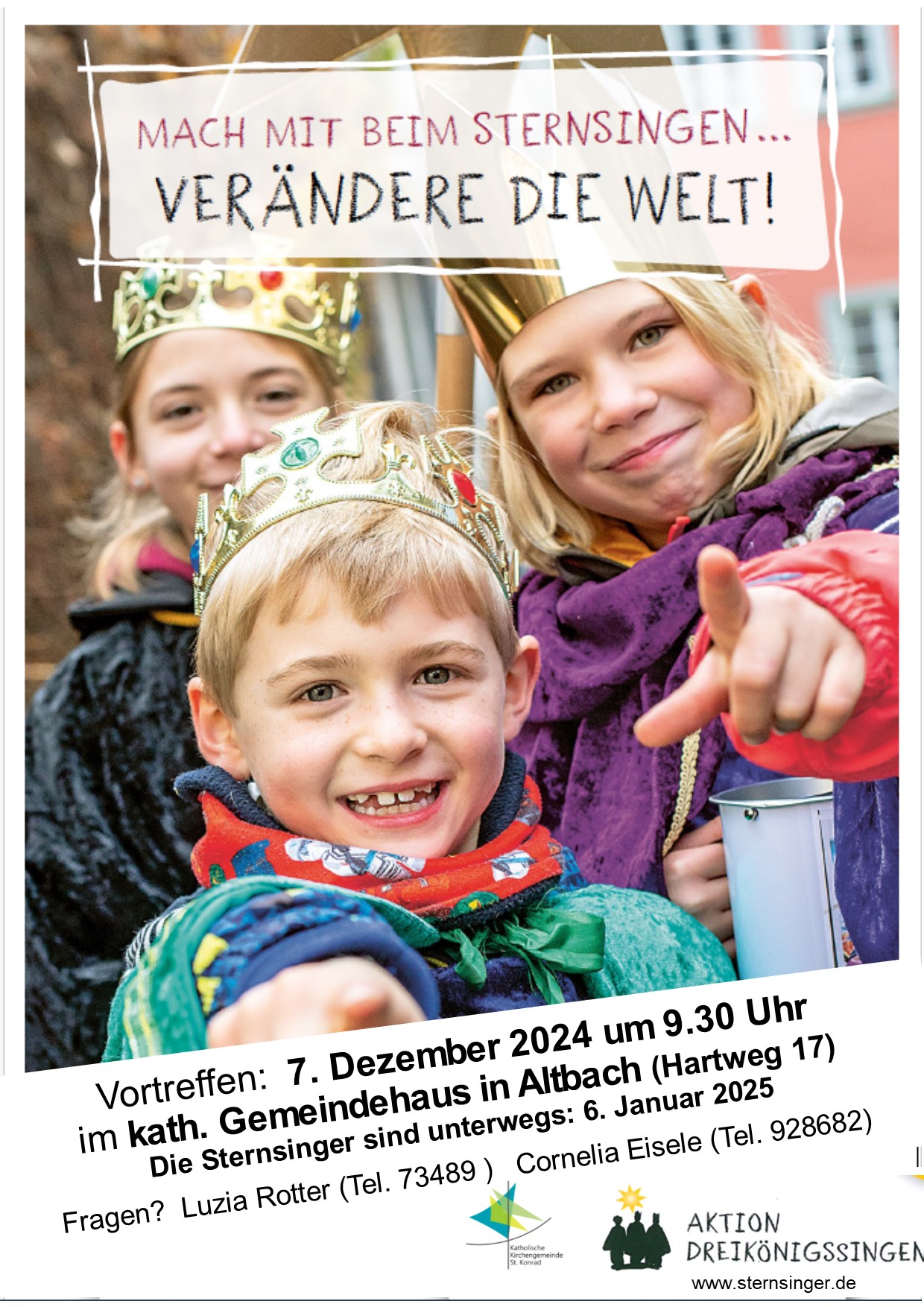 Vortreffen für alle Sternsingerinnen und Sternsinger ist am Samstag 14. 12. um 14 Uhr im katholischen Gemeindehaus in Deizisau (Kirchstraße 30).