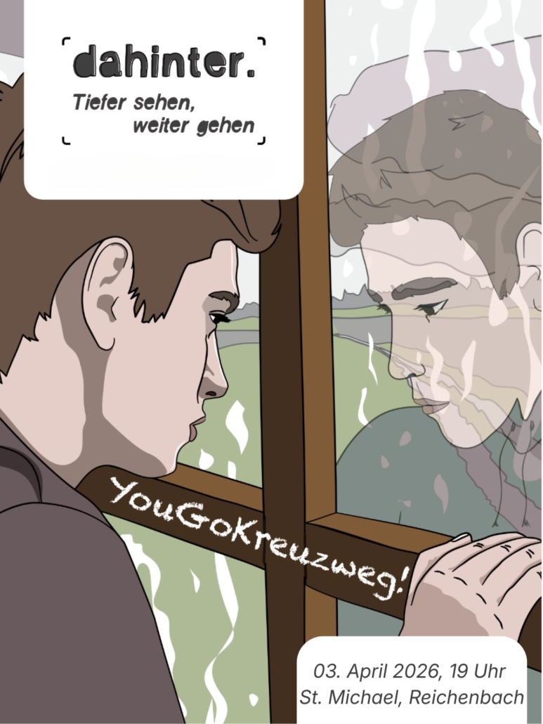 Wir laden Euch herzlich zum diesjährigen YouGoKreuzweg! an Karfreitag, 03. April 2026 um 19 Uhr in der Kirche St. Michael in Reichenbach ein.